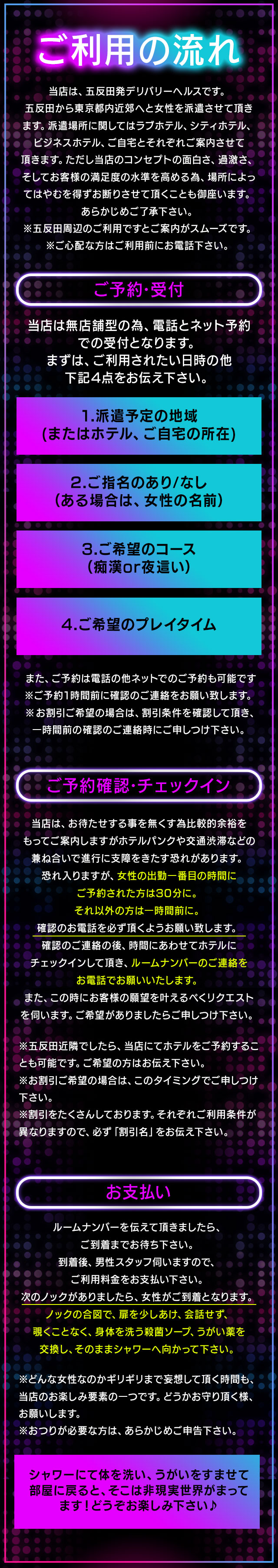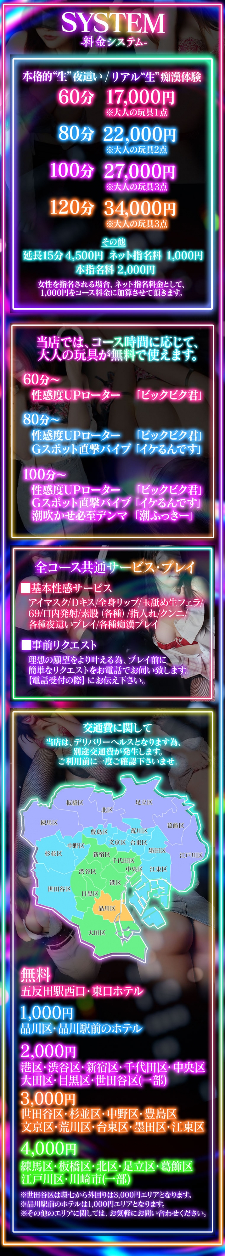 ※五反田地域でのご利用をお考えの方は、当店にてホテルをご案内可能です。お気軽にご相談下さいませ♪